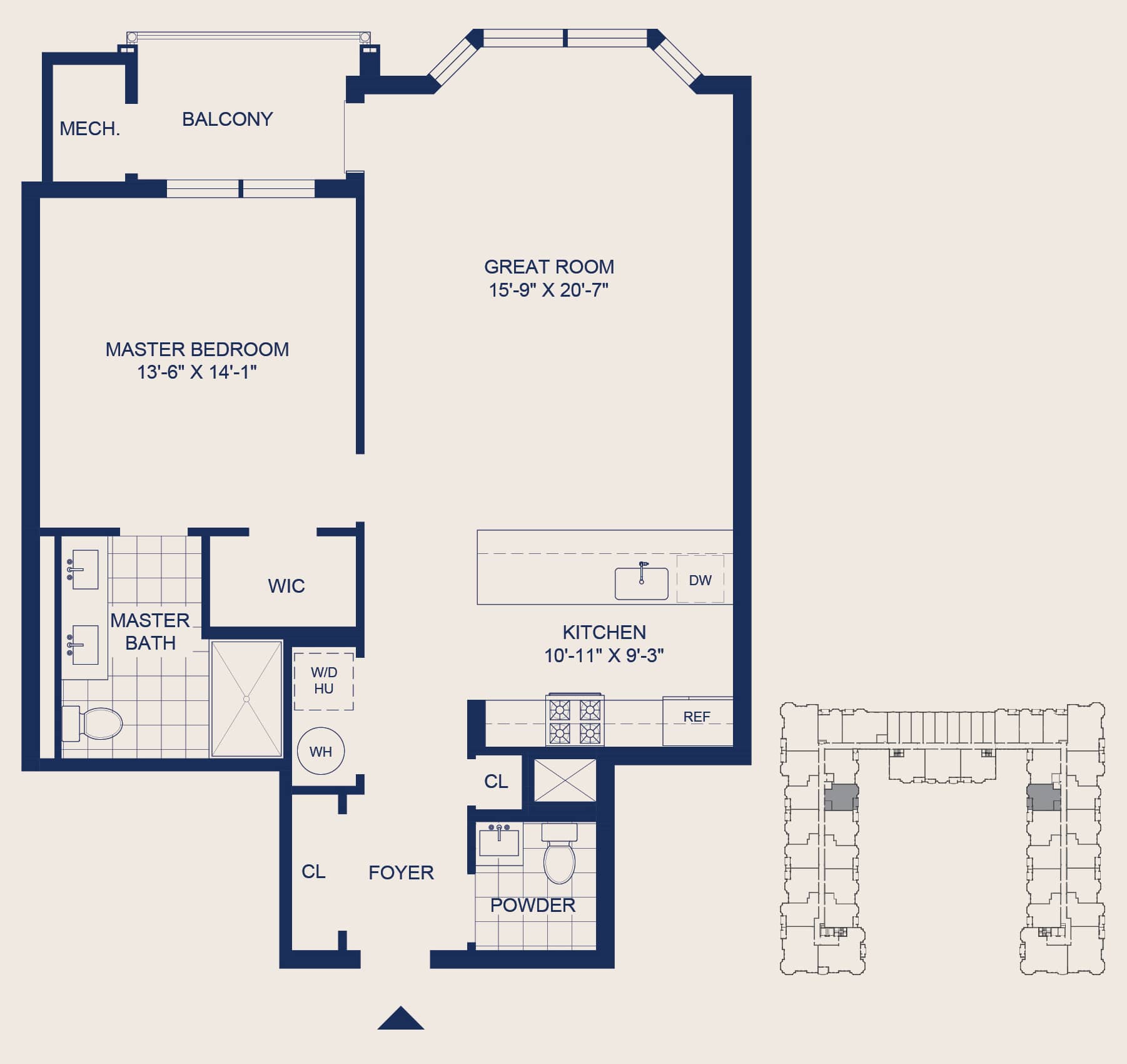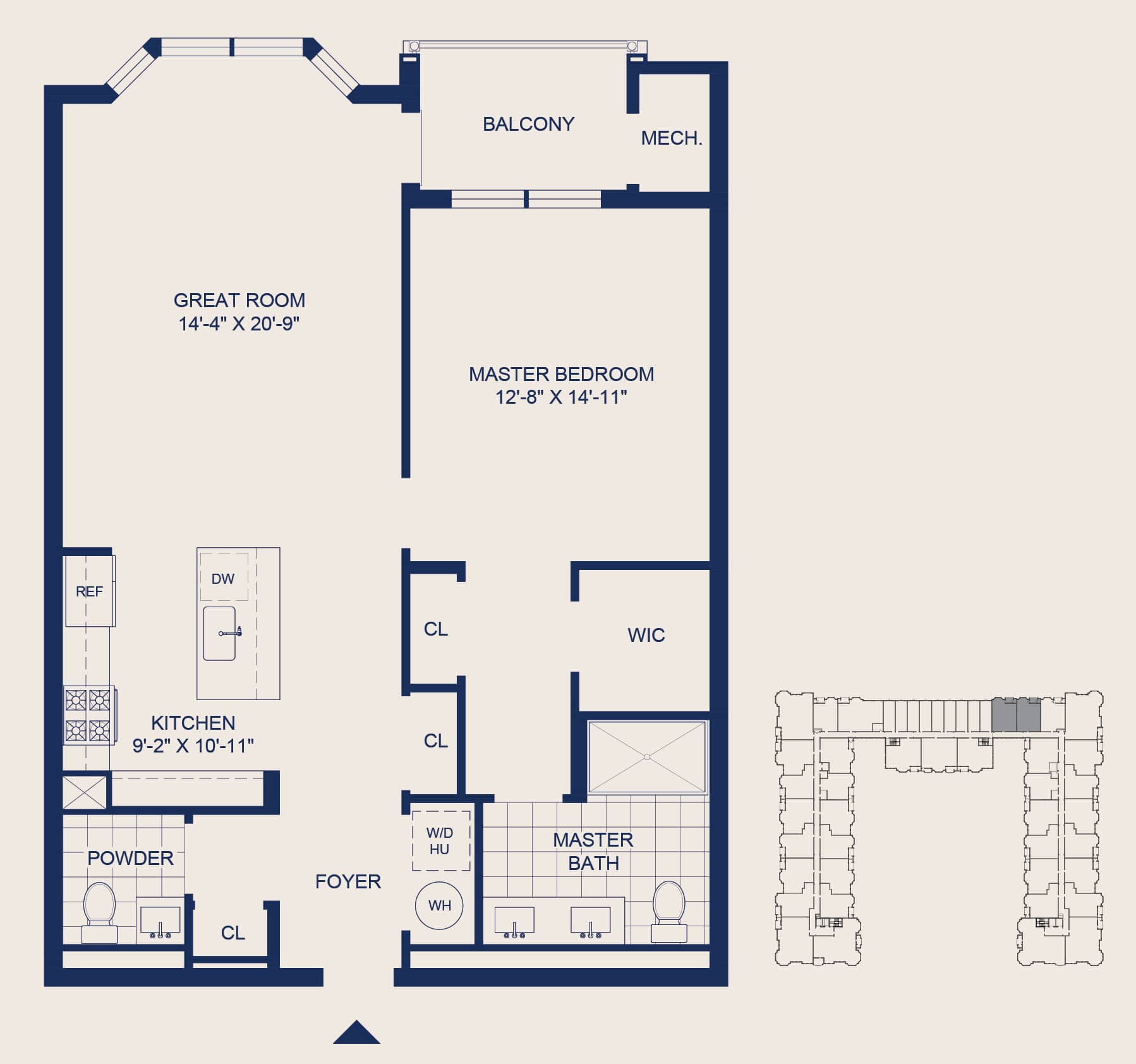 1 Bedroom • 1.5 Bath • Large Balcony