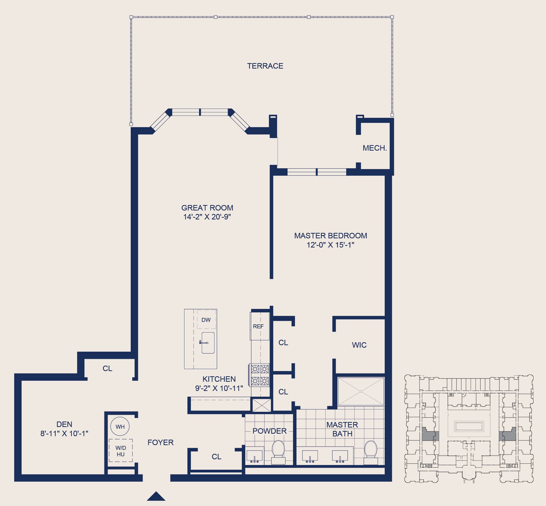 1 Bedroom • 1.5 Bath • Den • Terrace